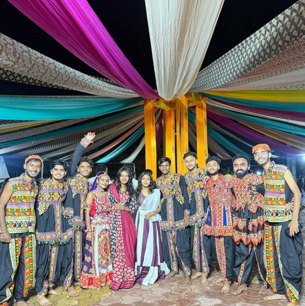 रायपुर :– आंजनेय यूनिवर्सिटी, रायपुर ने नवरात्रि पर्व के पावन अवसर पर “रास-गरबा महोत्सव 2025” का भव्य आयोजन किया। विश्वविद्यालय परिसर का वातावरण देवी माँ की भक्ति और गरबा की ताल पर झूम उठा। कार्यक्रम का शुभारंभ माँ दुर्गा की आरती एवं दीप प्रज्वलन से हुआ। इसके पश्चात रंग-बिरंगे परिधानों में सजे विद्यार्थियों और प्राध्यापकों ने गरबा और डांडिया की प्रस्तुतियों से सभी को मंत्रमुग्ध कर दिया।