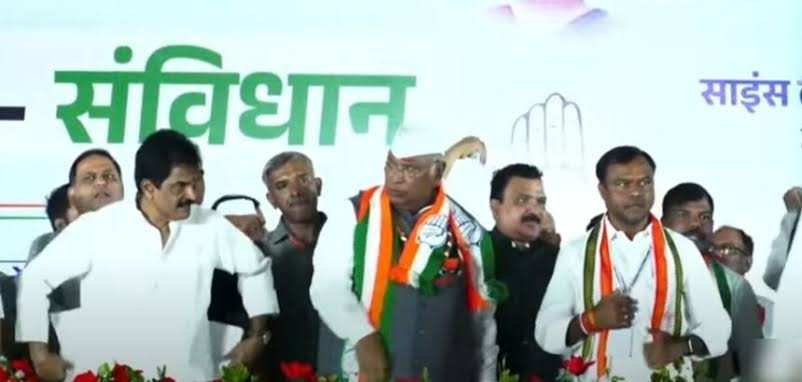छत्तीसगढ़:– कांग्रेस अध्यक्ष मल्लिकार्जुन खड़गे रायपुर एयरपोर्ट पहुंचे, जहां कांग्रेसियों ने गर्मजोशी से उनका स्वागत किया, जिसके बाद एयरपोर्ट से खड़गे साइंस कॉलेज मैदान में आयोजित किसान, जवान, संविधान सभा में शामिल हुए। कार्यक्रम के मंच में छत्तीसगढ़ सह-प्रभारी जरिता लैतफलांग, पूर्व पीसीसी चीफ मोहन मरकाम, प्रेम साय सिंह टेकाम सहित कई वरिष्ठ नेता मौजूद हैं।