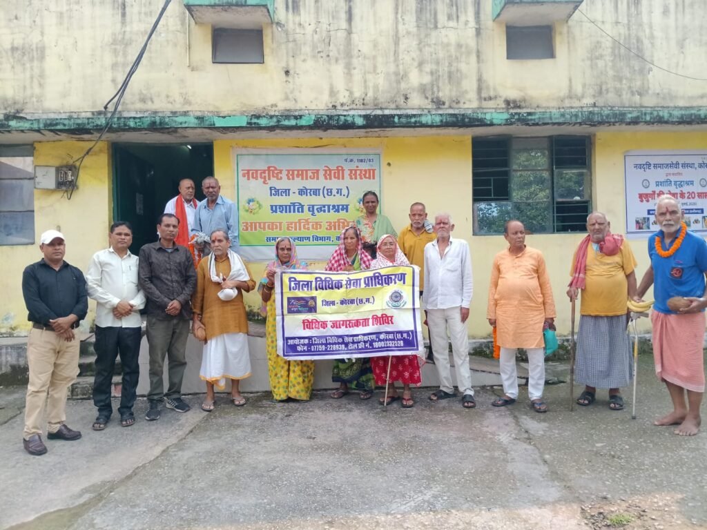 कोरबा :– श्री संतोष शर्मा जिला सत्र न्यायाधीश अध्यक्ष जिला विधिक सेवा प्राधिकरण कोरबा के निर्देशन एवं सचिव कुमारी डिंपल के मार्गदर्शन अंतर्राष्ट्रीय वृद्धजन दिवस पर जिला विधिक सेवा प्राधिकरण कोरबा ने जिला एवं विभिन्न तालुका क्षेत्रों में वरिष्ठ नागरिकों के सम्मान और उनके विधिक अधिकारों पर जागरूकता का बिगुल फूंक का अलग-अलग तालुका के भिन्न-भिन्न कार्यक्रमों बड़ी संख्या में बुजुर्ग समाजसेवी विद्यार्थी और अधिकारी सम्मिलित हुए।