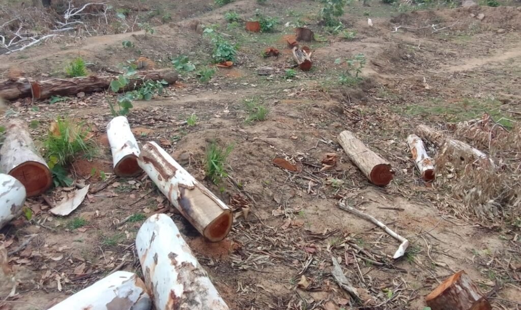 जिसमे पौधे पेड़ का रूप ले चुके हैं। इन पेड़ों पर लकड़ी तस्करों की नजर पड़ गई जिसका खुलासा उस वतक्त हुआ जब प्लांटेशन के भीतर भारी संख्या में नीलगिरी को काटे जाने के प्रमाण मिले । इन पेड़ों की कटाई गौरेला पेंड्रा मरवाही जिले के लकड़ी तस्करों ने की थी। उन्होंने प्लांटेशन में 200 से अधिक नीलगिरी के हरे भरे पेड़ों को काट डाला। इन पेड़ों को माजदा वाहन में भरकर ले जाया जाता इससे पहले ग्रामीणों को भनक लग गई। उनके विरोध पर लकडी तस्करों को बैरंग लौटना पड़ा।