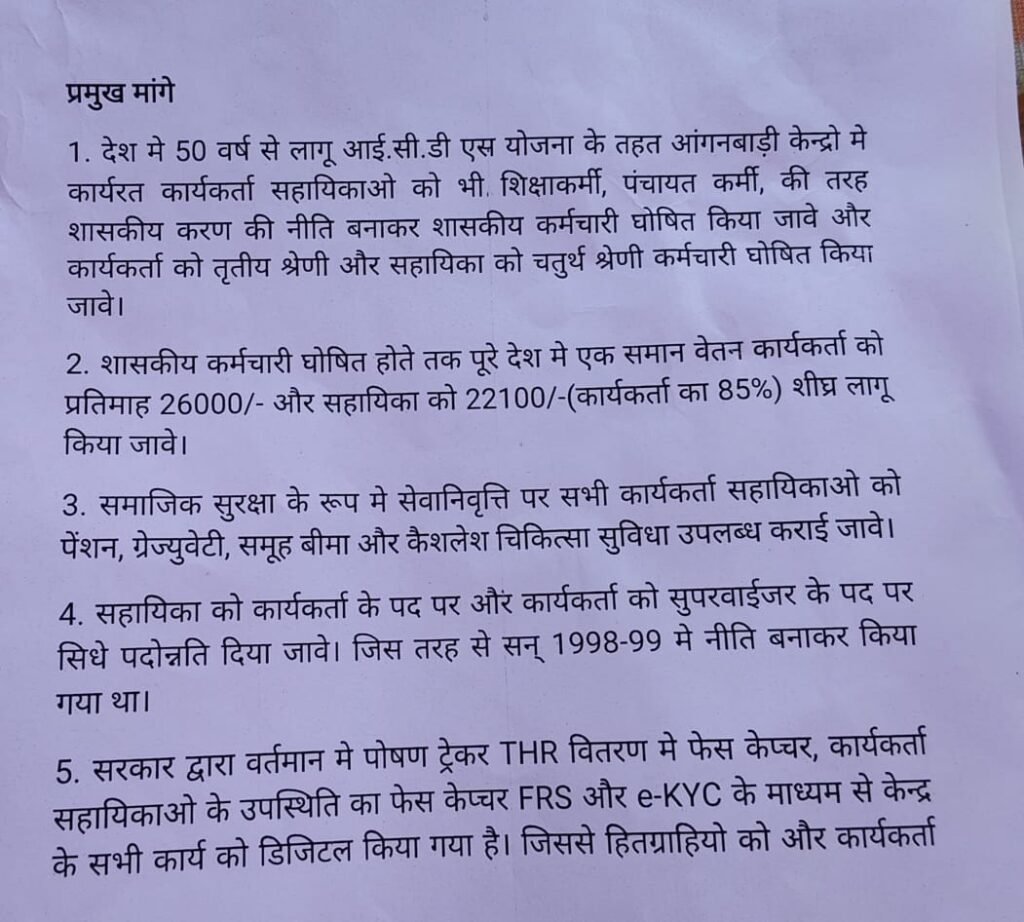“हम मातृशक्ति जो राज्य की हर कोने में बच्चों और माताओं की देखभाल में दिन-रात जुटी हैं लेकिन उचित मानदेय और सम्मान नहीं मिलता सरकार को चाहिए कि हमारी सेवा को संविदा नहीं बल्कि स्थाई सेवा के रूप में मान्यता दे”। में