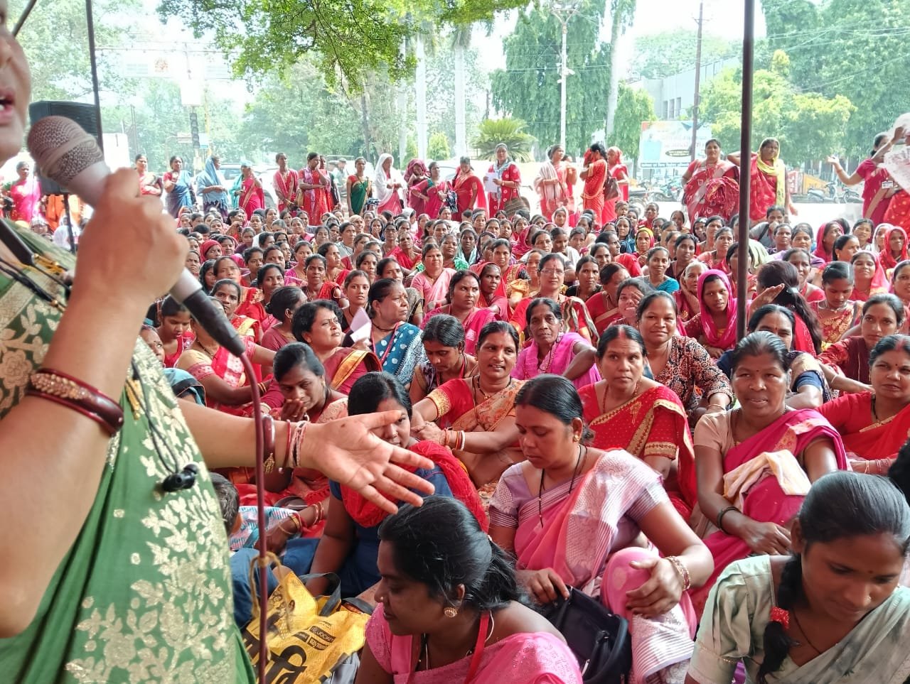 सभा को संबोधित करते हुए आंगनबाड़ी कर्मचारी संघ की जिला अध्यक्ष एवं पदाधिकारी ने कहा –