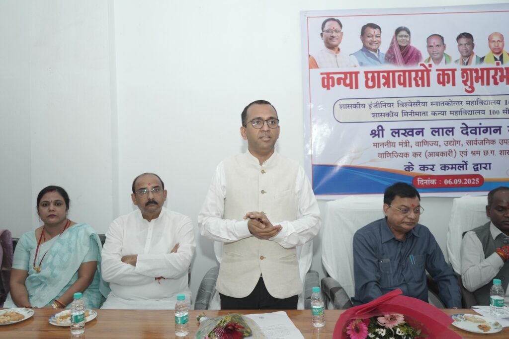 कोरबा :– शासकीय इंजीनियर विश्वेसरैया स्नाकोत्तर महाविद्यालय परिसर में वाणिज्य,उद्योग, सार्वजिनक उपक्रम,वाणिज्यिक कर (आबकारी) व श्रम मंत्री छत्तीसगढ़ शासन लखन लाल देवांगन के मुख्य आतिथ्य में कन्या छात्रावास का शुभारंभ कार्यक्रम का आयोजन किया गया।